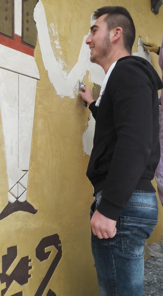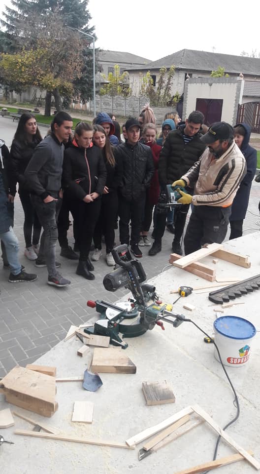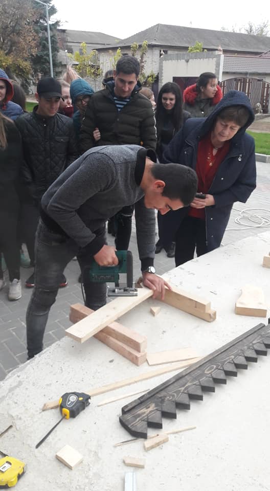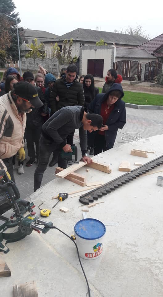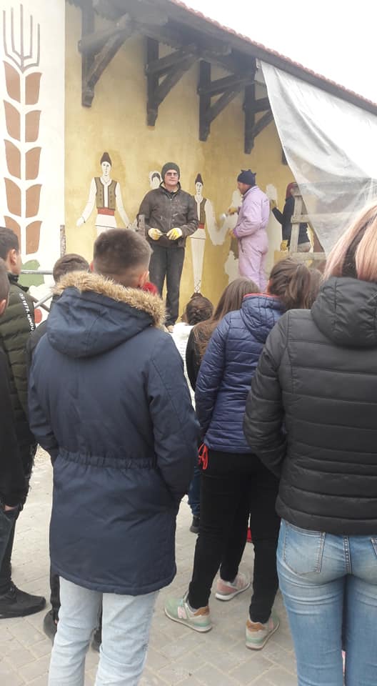 Tineri din satele Slobozia Mare, Cislita-Prut, Giurgiulesti, Valeni au participat cu interes la un mastrer-class oferit de mesterii-artisti plastici, privind tehnica Sgraffito aplicata in 3 straturi de ipsos colorat si mestesugaritul cioplitului in lemn.